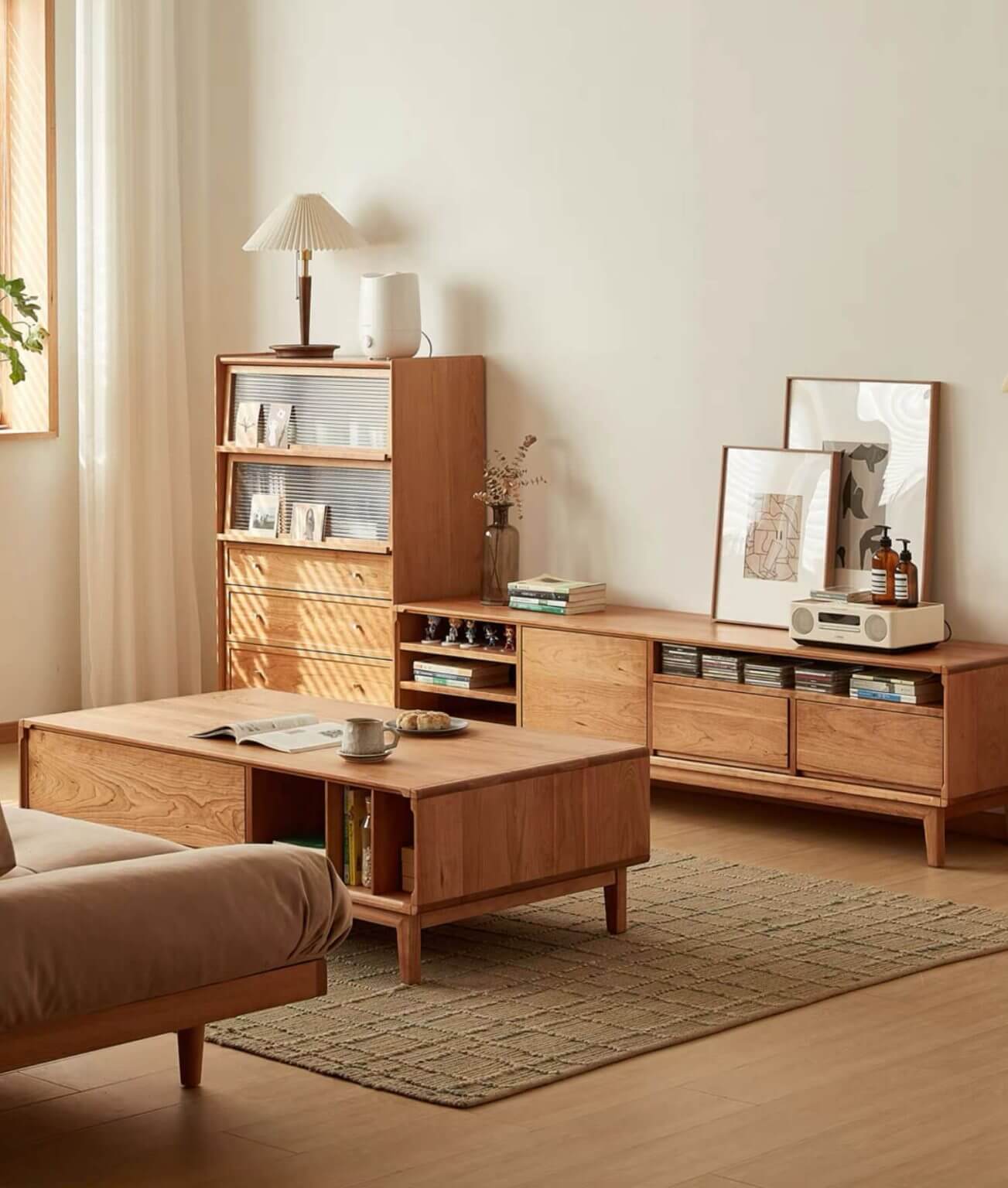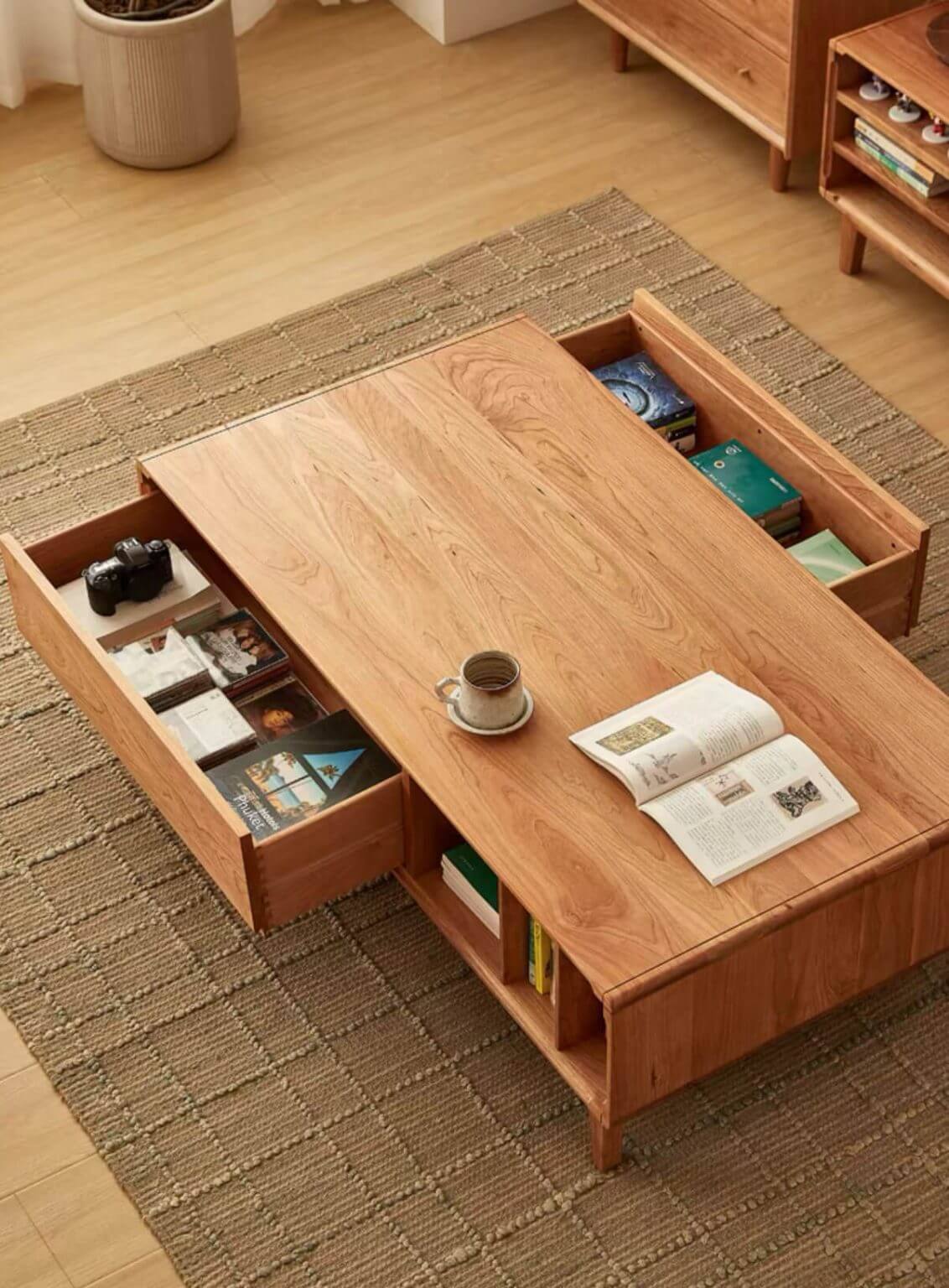 - Bàn trà có ngăn kéo nhỏ, để được chút đồ vặt
