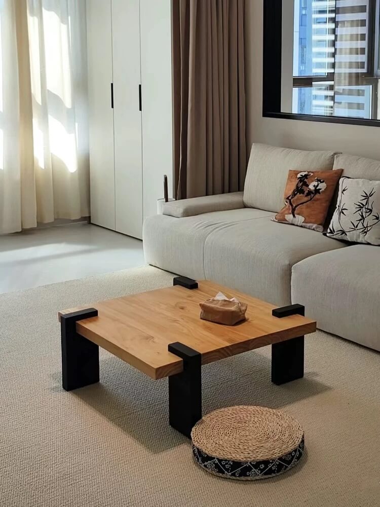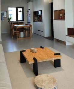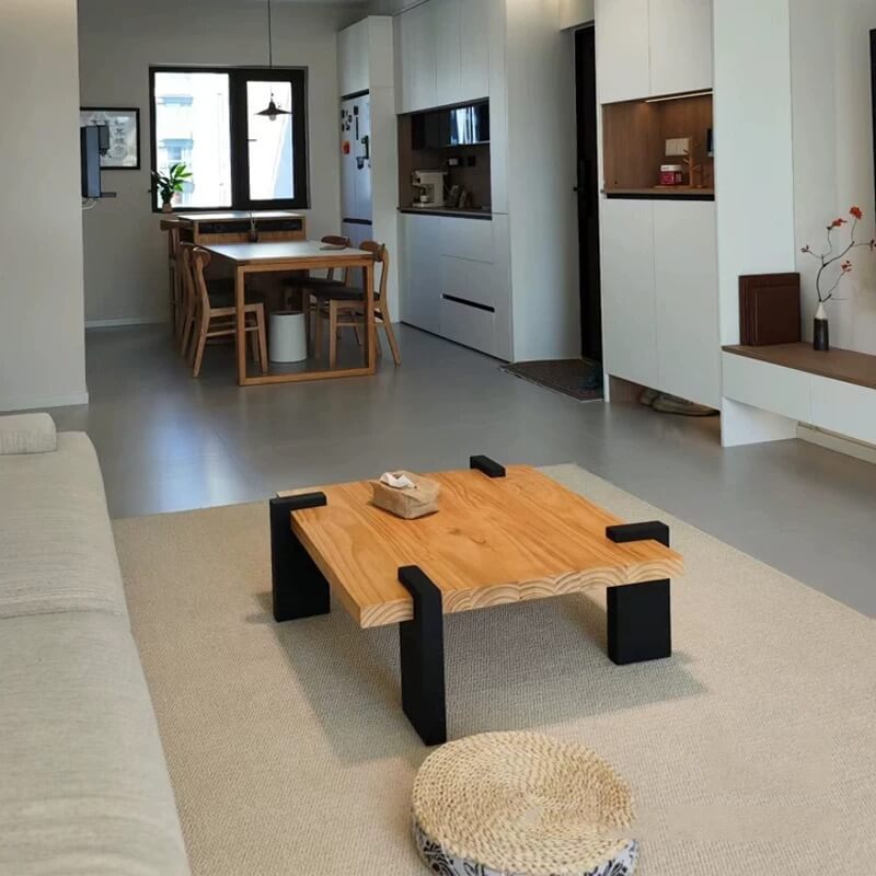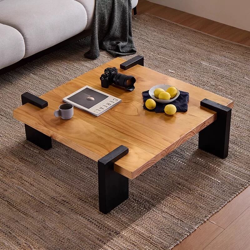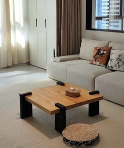 Bàn trà vuông phong cách Wabi Sabi – Thiết Kế Tối Giản, Sang Trọng. Là mẫu bàn trà mang phong cách tối giản nhưng tinh tế, đây được xem là lựa chọn hoàn hảo cho những không gian phòng khách hiện đại. Với thiết kế mặt gỗ vuông vắn kết hợp chân trụ chắc chắn, bàn không chỉ đẹp mắt mà còn bền bỉ theo thời gian.