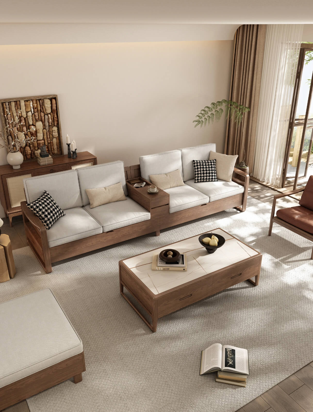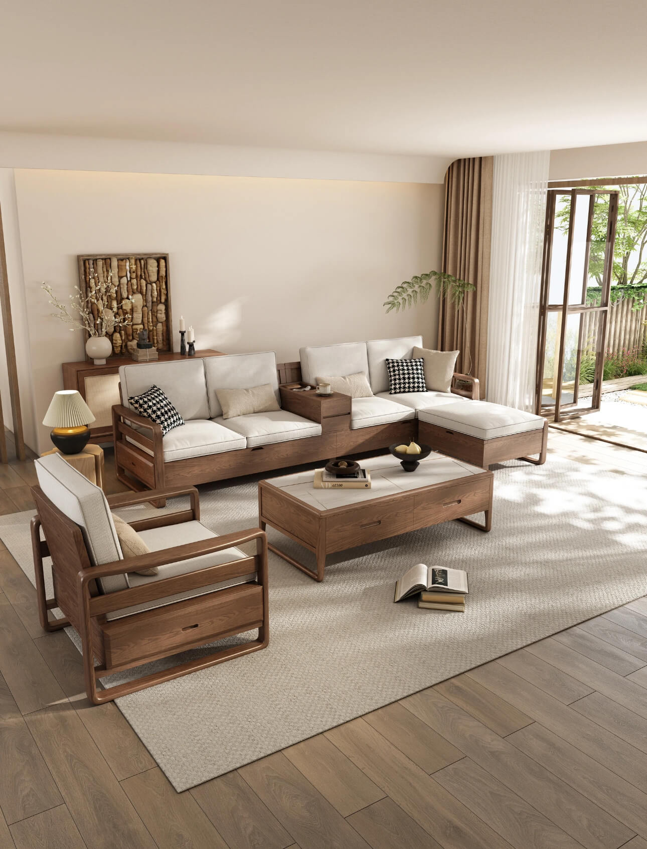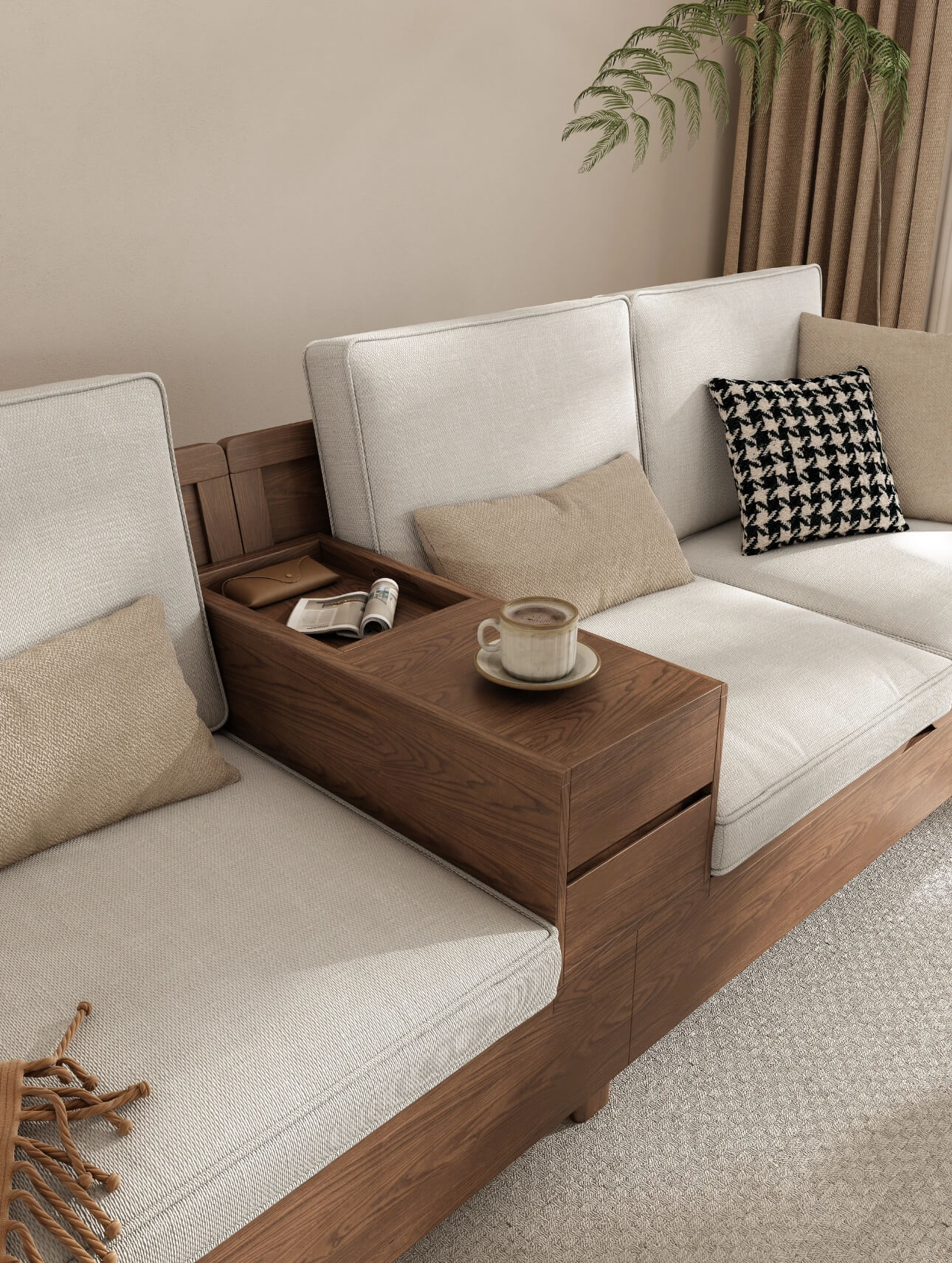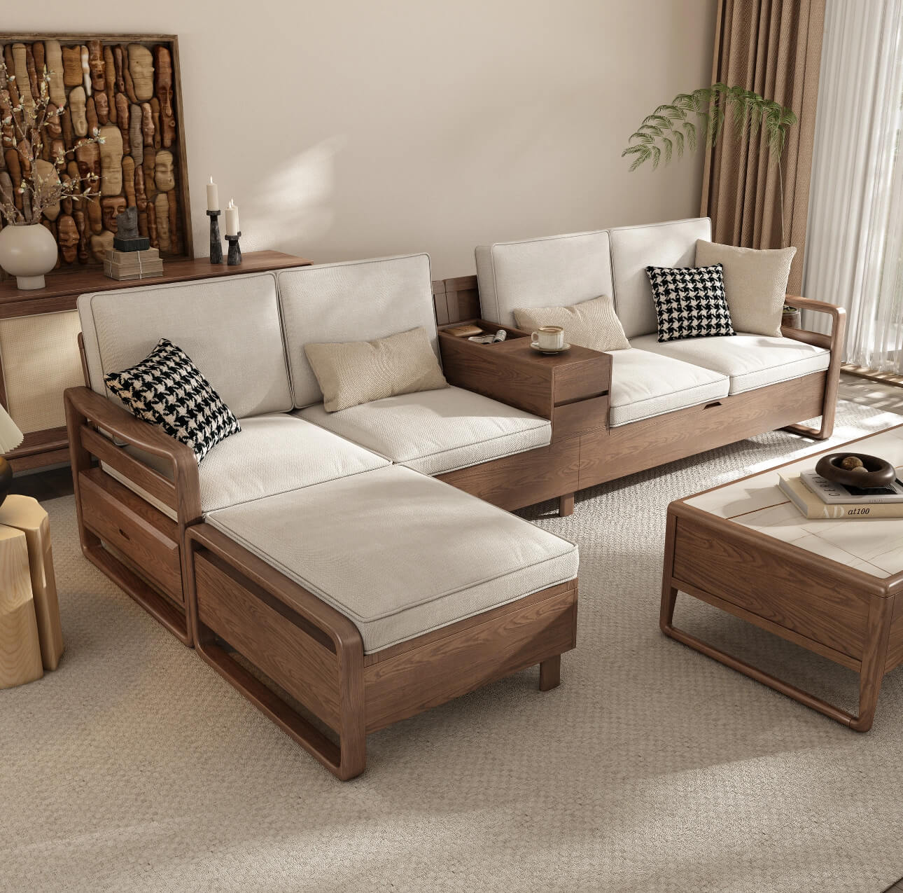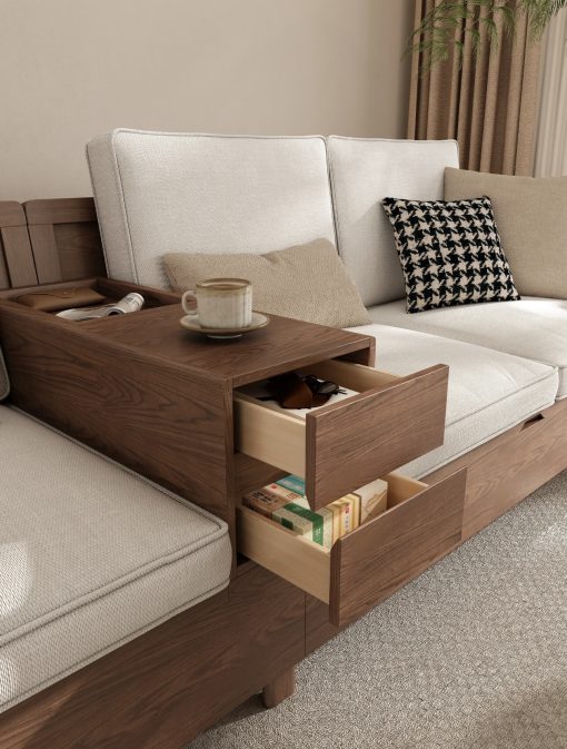 - Tiện ích tối đa: Sofa và bàn trà đều có ngăn chứa.