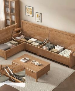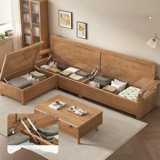 - Tiện ích tối đa: Sofa và bàn trà đều có ngăn chứa.