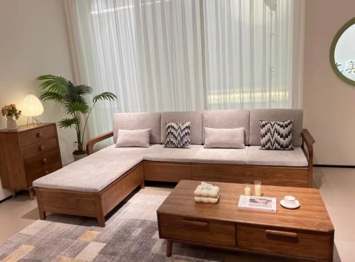 Bộ sofa gỗ ngăn ẩn VBG21 (ghế dài, đôn, bàn trà)