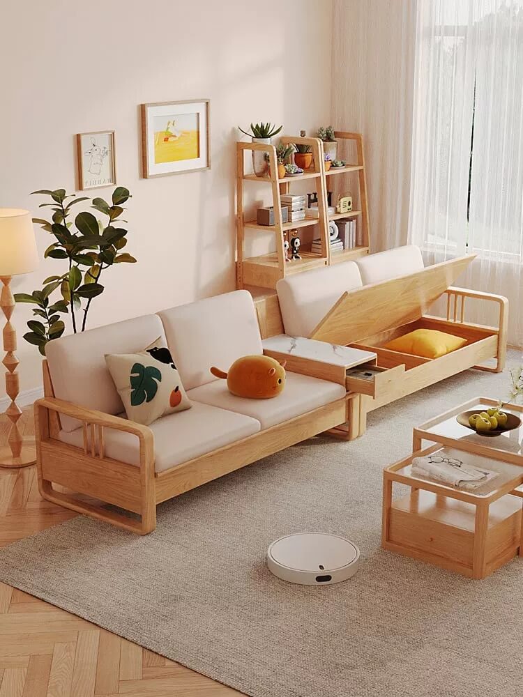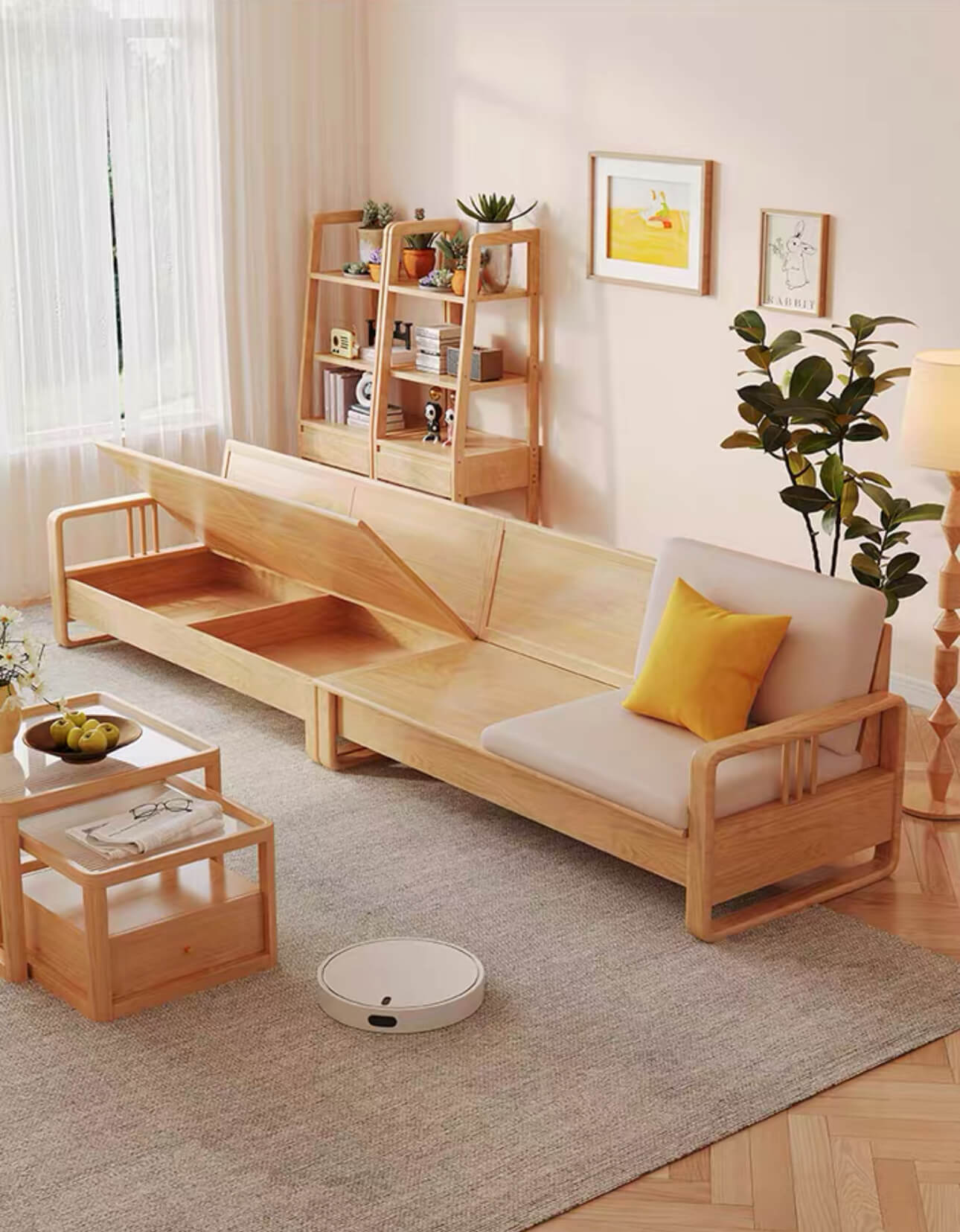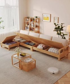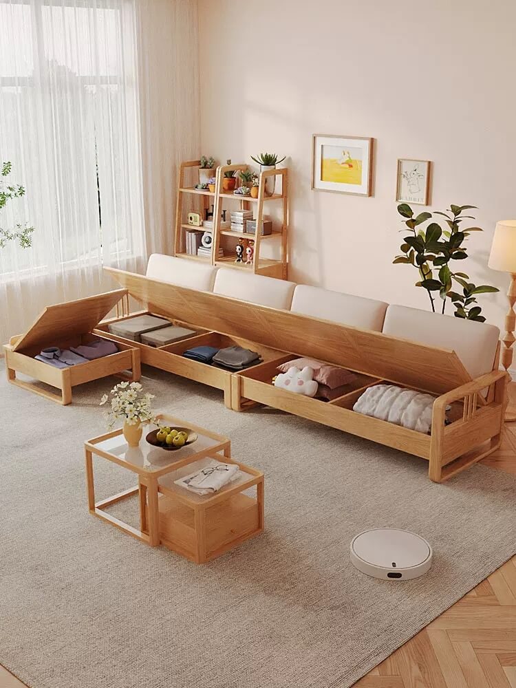 - Tiện ích tối đa: Sofa và bàn trà đều có ngăn chứa.