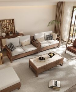 - Mặt sofa có thể lựa chọn sử dụng nan hoặc gỗ nguyên tấm