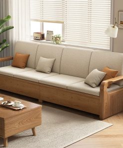 - Khi tháo toàn bộ đệm, sofa trở thành một chiếc phản gỗ rộng, có thể nằm hoặc dùng như giường tạm.