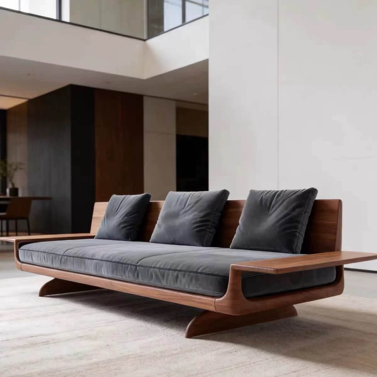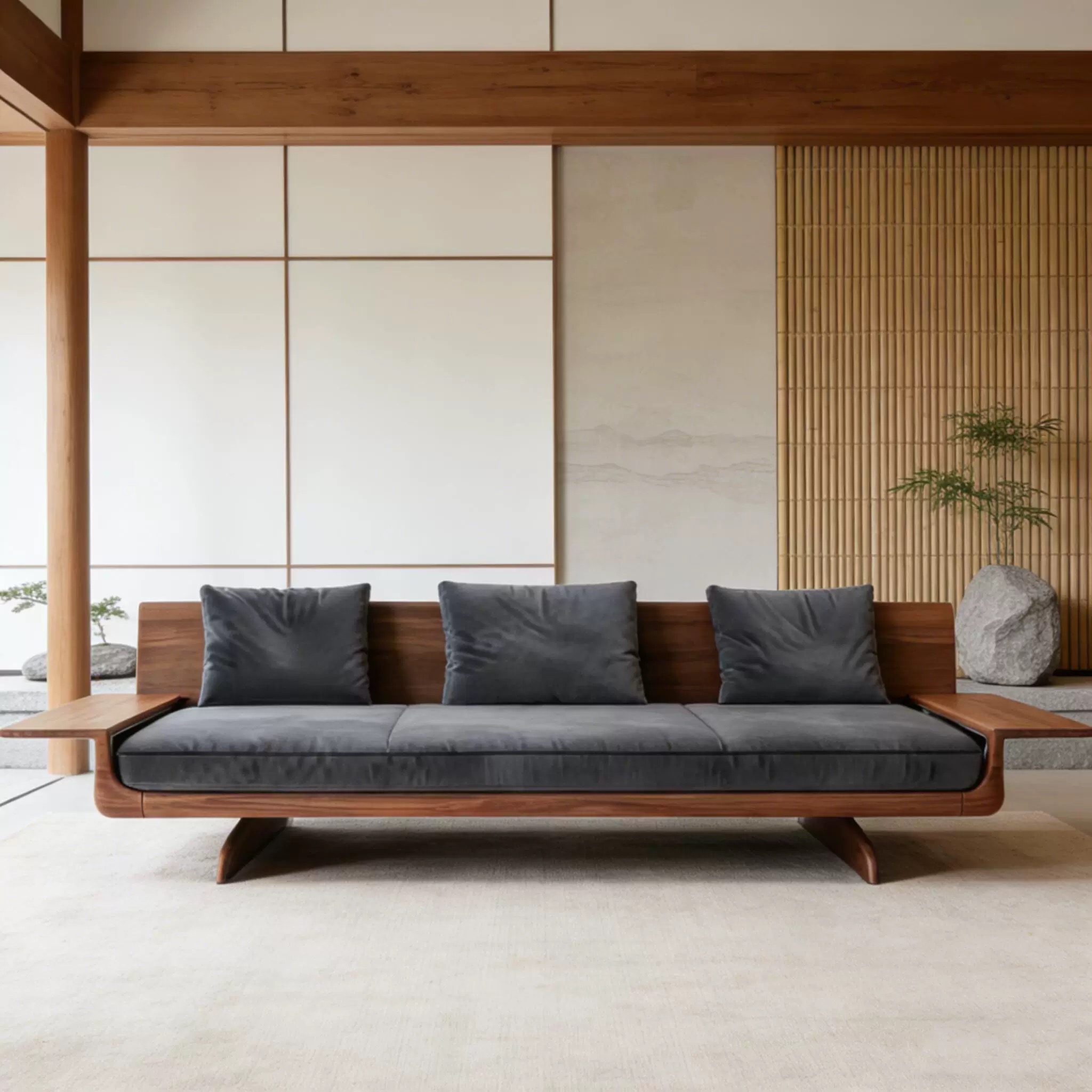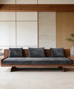 Mẫu sofa trong hình mang đậm phong cách Nhật Bản tối giản (Japanese Minimalism) với thiết kế thấp, đường nét thanh thoát và sử dụng chất liệu tự nhiên. Đây là lựa chọn lý tưởng cho những ai yêu thích không gian sống tinh giản.